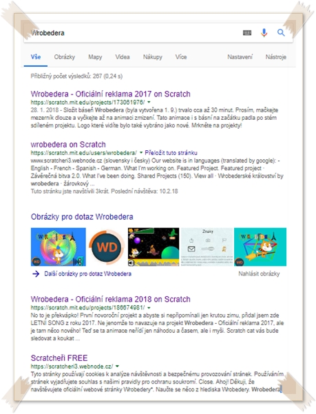 Programování na Scratchi nás velmi baví. Webovka ale také potřebuje naprogramovat. My ale nemáme nastudované HTML kódy [Wrob, správce webu sice ano, ale ne všechny tagy (někdy jsou kolonky ze Scratche, např.: v podstránkách Kamarádi WD a v Připoj se k Scratchi) a neumí Java Script*], tak jsem vybral prostě webnode. Tam totiž stejně jako na Scratchi nedávám žádné texty, např.: